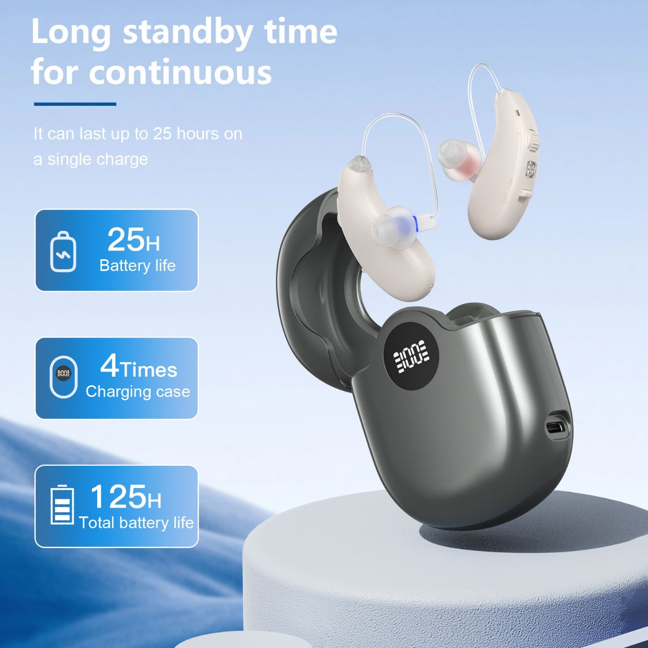 Long-Lasting Rechargeable Hearing Aids with 125H Total Battery Life